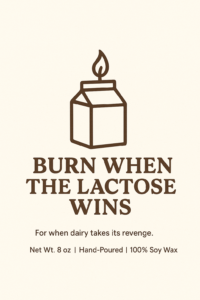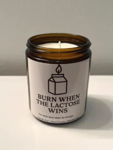 This one is for the sensy tummies. Our dairy-free friends can’t help but have a little lactose every once in a while, and we don’t blame them! Thankfully, Scents of Relief has a candle they can burn when dairy takes its revenge.